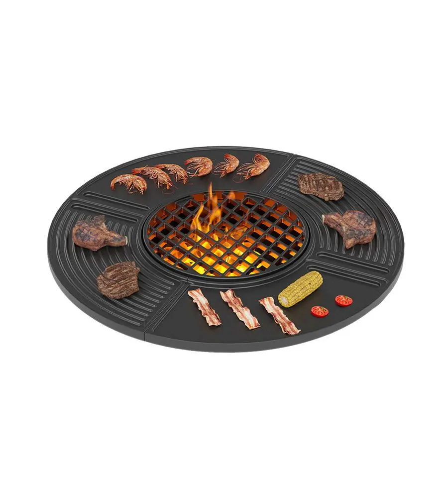 В середине плиты размещина чугунная решётка Везувий Стейк диаметром 314 мм. Эта решётка предназначена для готовки мяса и овощей с красивым диагональным рисунком