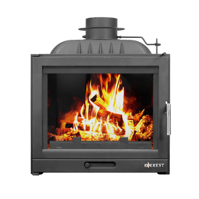 Каминная топка EVEREST U10 изготовлена из качественного жаростойкого чугуна (ГОСТ 1412-85)  с толщиной стенок 6-10 мм. Вес топки составляет 98 кг. Модель рассчитана на обогрев помещений объёмом до 200 м³. Топка усилена чугунными вставками с системой вторичного дожига. С помощью этой функции по каналам подачи вторичного воздуха поступает воздух, который нагревается при прохождении между топочной камерой и стенками корпуса. Далее нагретый воздух через дефлектор поступает в топку, перемешивается с газами - продуктами горения, чем вызывает повторное возгорание. Патрубок дымохода диаметром 150 мм не универсальный.  оснащён поворотным шибером. Заслонка сделана из чугуна, а её положение регулируется ручкой на передней панели топки.