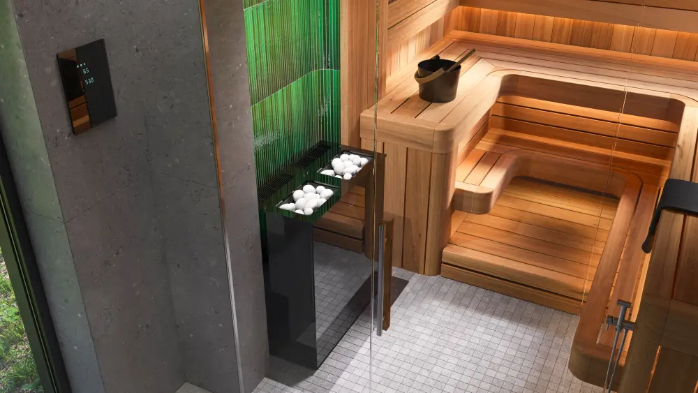 Управление электрической печью осуществляется с помощью блока управления по Wi-Fi или Bluetooth или в мобильном приложении Sangens App. Пользователю доступно 3 режима температуры и влажности в парной: русская жесткая и мягкая бани, финская сауна.