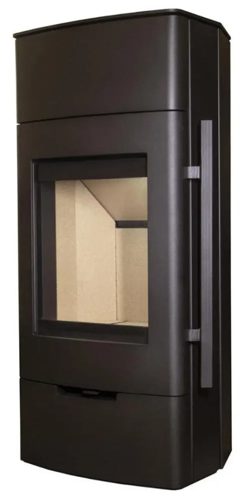 Большое прямое стекло открывает отличный вид на огонь. Футеровка топки выполнена из вермикулита. Очаг с возможностью подключения притока воздуха извне. Выдвижной нижний ящик оснащен системой "Push-to-open" с направляющими. Дымоход, диаметром 150 мм, подключается сверху или сзади.